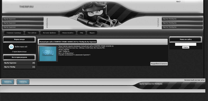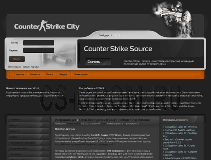 Оригинальный шаблон, и подходит он для сайтов о контр-страйк'е.В этом шаблоне, как увидел я, сделана очень хорошо шапка, в которую помимо картинок, дабавлена форма входа, и, очень интересно сделана возможность скачать ксс, т. е. прямо в шапке находится кнопка скачать, это очень оригинальное решение.